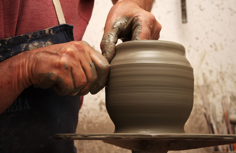 Foto: ceramista di Assemini alle prese con la modellazione di un tipico e tradizionale vaso.